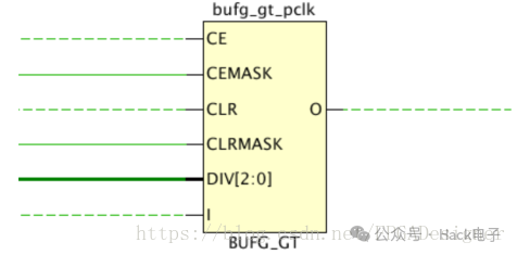 對(duì)某一管腳設(shè)置了個(gè)例分析,會(huì)導(dǎo)致禁用經(jīng)過該管腳的路徑上的時(shí)序分析,也不會(huì)報(bào)告相關(guān)信息。第二個(gè)例子如下圖,BUFG_GT有一個(gè)動(dòng)態(tài)時(shí)鐘分頻控制管腳DIV[2:0],由其它邏輯驅(qū)動(dòng)而不是直接連接到VCC/GND: