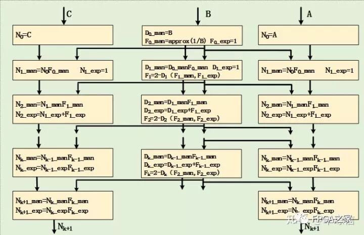 對應(yīng)的函數(shù)迭代過程也發(fā)生相應(yīng)地改變,這里設(shè)計時應(yīng)該考慮每一步驟中的指數(shù)變化情況。相應(yīng)的設(shè)計過程如下圖所示: