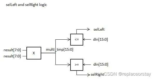 通過result乘方與din比較決定是否刷新左右操作數(shù)的選擇信號selLeft和selRight。