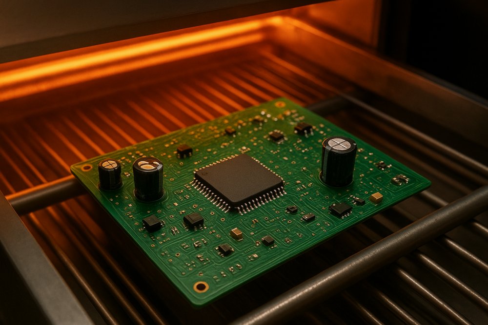 貼裝完成后,所有元件僅依靠錫膏暫時固定。要讓它們真正牢固,就必須經(jīng)過 回流焊接(Reflow Soldering)。電路板被送入高溫爐中, 經(jīng)歷“預(yù)熱—保溫—回流—冷卻”四個階段。當(dāng)溫度至錫膏熔點時,焊膏中的金屬顆粒熔化,與元件焊盤結(jié)合,形成牢固的焊點。整個焊接過程的溫度曲線至關(guān)重要:溫度過低會焊不牢,過高則可能損傷元件。因此,回流焊不僅是“加熱”,更是一場受控的物理化學(xué)反應(yīng)——它決定了電路連接的長期可靠性。