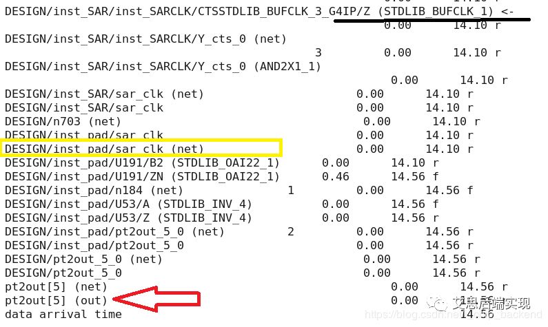 先看一下到sar_clk的timing path:可以看到,這個port 有一個**…G4IP/Z buffer驅(qū)動。沒有什么問題。但是,請留意一下黃色高亮區(qū)域的這個net:…/inst_SAR/sar_clk (net)**