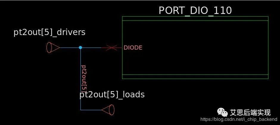 可以看到,有一個是DIODE cell的DIODE pin 不相等,另外一個是和這個DIODE cell 相連接的net 不等,這個net也是會送到對應(yīng)的output port的 ,如下圖所示