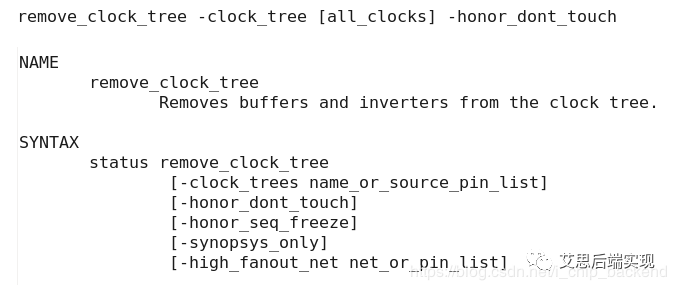 為了定位問題,將上邊的remove_clock_tree命令分解,可以定位出來,如果使用下面的細化命令,是會引起這個FM的問題。