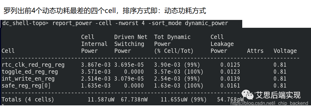 譬如關(guān)心cell的動態(tài)功耗,這時可以使用下列命令來羅列: