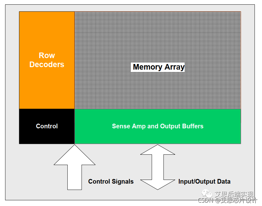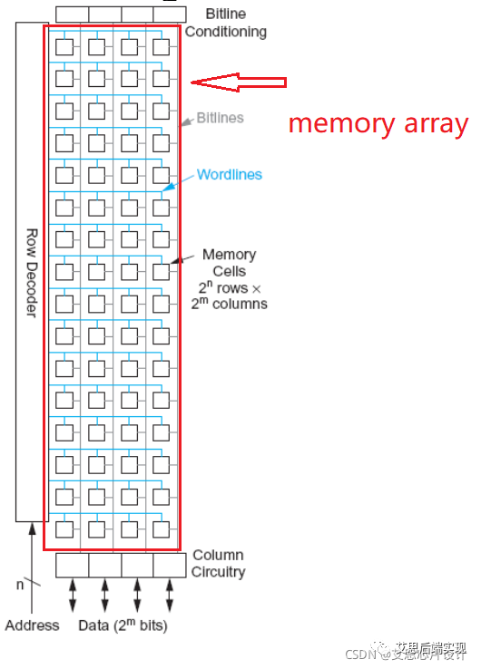 片載SRAM的結(jié)構(gòu)拆解對于芯片上的SRAM,是由一個個bit cell拼接成一個矩陣,矩陣的橫豎分布被BL和WL來控制,這個由bit cell組成的矩陣通常就會被稱為memory array通常的SRAM都是由以下兩個部分組成的