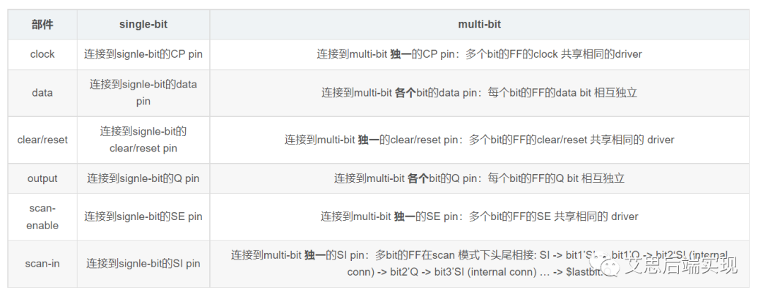 Multi-bit顧名思義就是將通常單bit的FF,封裝為一個(gè)多bit的FF,下面一起來(lái)看一下他們之間的異同: