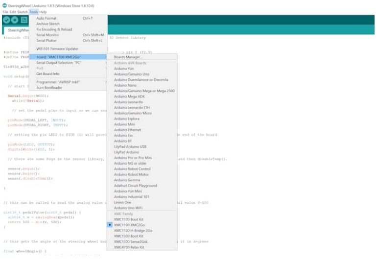 #6:在Tools > Board中,選擇XMC1100XMC2Go,并將串行輸出選擇設置為PC。
