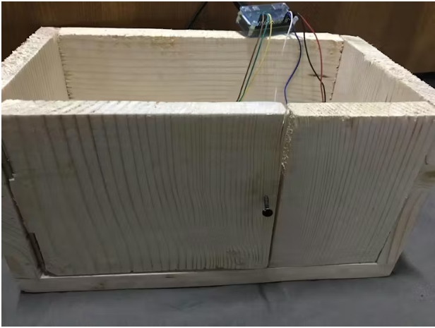 安全鎖采用步進電機。它有2個可能的固定位置,一個用于關閉安全,一個用于打開安全。當主人輸入正確的密碼時,電機打開保險柜,保險柜關閉。這個按鈕也作用于步進運動,每次按下它,保險箱打開,鎖關閉。