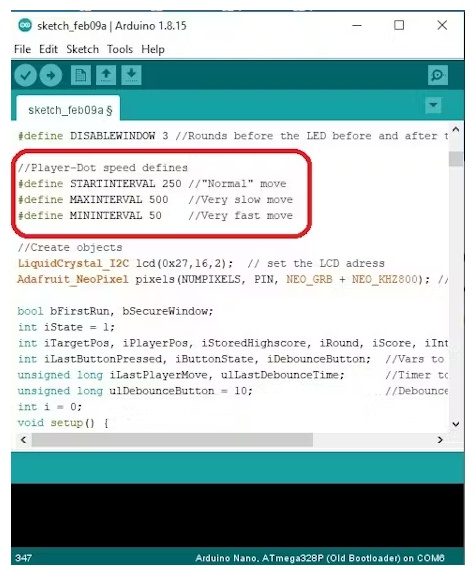 至于游戲玩法,就像我之前提到的,在這種情況下,沒(méi)有速度遞增的關(guān)卡,但每個(gè)連續(xù)的回合都以隨機(jī)的速度開(kāi)始,通常速度可以很容易地在代碼中改變: