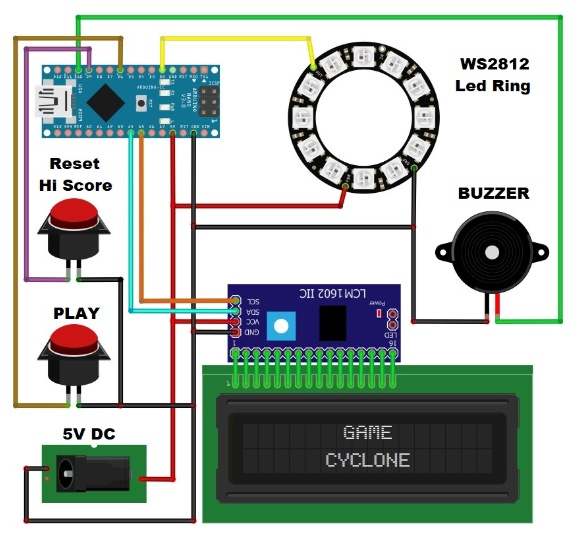 這一次,我使用了一個(gè)帶有12個(gè)led的小環(huán),游戲不包含關(guān)卡,而是一個(gè)連續(xù)的游戲,直到目標(biāo)標(biāo)記沒(méi)有被擊中。