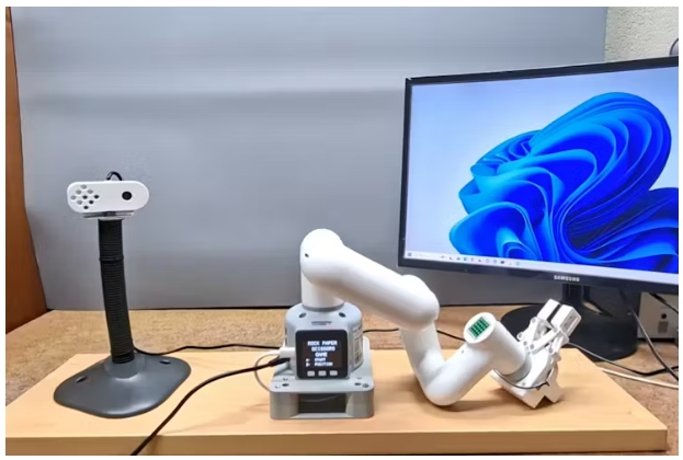 以下是對(duì)主要項(xiàng)目的描述,該項(xiàng)目將展示所有三個(gè)組件的功能:機(jī)械臂、相機(jī)和抓手。所以我決定開發(fā)一個(gè)著名的“石頭剪刀布”游戲的版本,在這個(gè)游戲中,每個(gè)玩家同時(shí)用伸出的手在三種形狀中做出一種——石頭、布和剪刀。