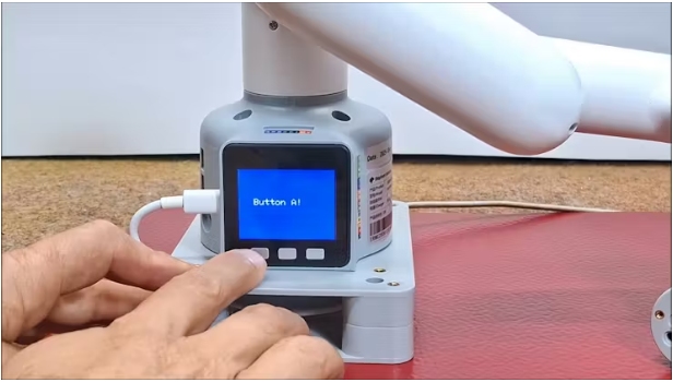 接下來,我們連接12v電源和夾具,并上傳以下代碼,命名為“系統(tǒng)測(cè)試代碼”。此代碼首先將所有伺服(關(guān)節(jié))設(shè)置為默認(rèn)位置(0度),然后逐一測(cè)試所有伺服電機(jī)以及抓手。