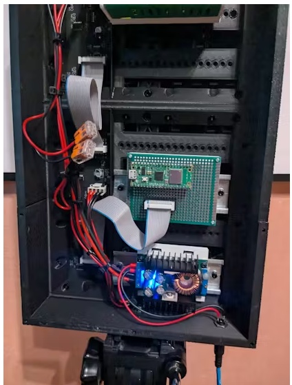 該顯示屏由兩個(gè)64x64像素的LED面板組成,類(lèi)似于普通電子道路標(biāo)志中使用的面板。為了控制它們,我使用Raspberry Pi Pico W作為驅(qū)動(dòng)程序。每個(gè)面板顯示一個(gè)路標(biāo)。