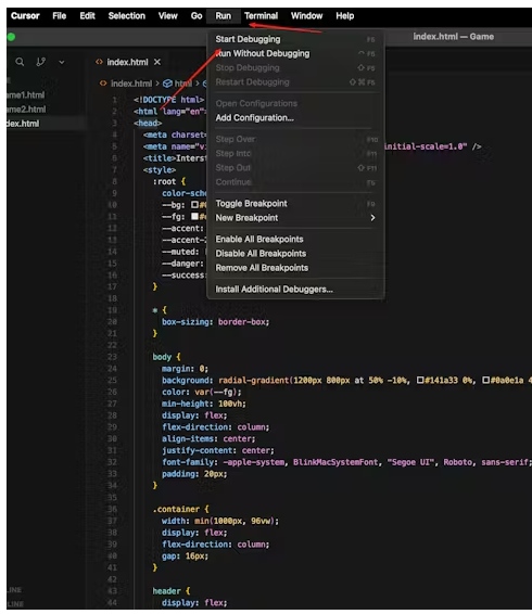 2. 在光標(biāo)或Visual Studio code中運(yùn)行游戲代碼