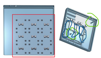 請將電纜穿過紅色孔位。從DIN側(cè)穿過左孔,從DOUT側(cè)穿過右孔。確保沒有l(wèi)ed被覆蓋,所有周圍的洞保持清晰。
