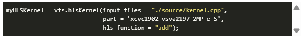 導(dǎo)入模塊后,下一步是創(chuàng)建HLS內(nèi)核對(duì)象,在此流程中,我使用鍵值對(duì)方法。在這種方法中,我們提供了HLS內(nèi)核的源代碼,所針對(duì)的部分板和要模擬的實(shí)際HLS函數(shù)的名稱。