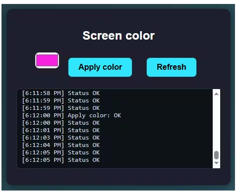 JavaScript每秒鐘輪詢/狀態(tài)并更新值。顏色選擇器的值在發(fā)布到/screen之前從#RRGGBB轉(zhuǎn)換為RGB565。