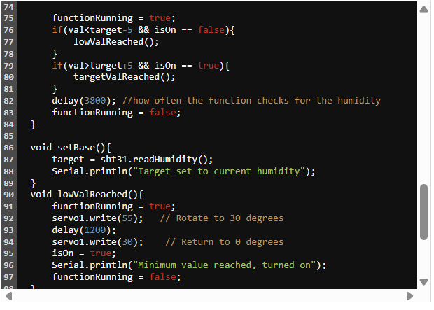 整個項目的核心是濕度傳感器。濕度傳感器將返回一個百分比值,該值將與一組閾值進行比較,當濕度水平過低時,該閾值將激活加濕器,當房間達到設定的濕度水平時,它將關閉加濕器。此外,我決定創(chuàng)建一個按鈕,在按下該按鈕時將目標濕度水平設置為房間的濕度水平,并將目標濕度重置為默認值。