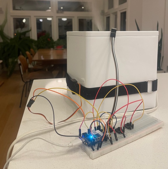 真正的唯一挑戰(zhàn)與創(chuàng)造這個相對簡單的家庭自動化的過程是讓伺服操作得當。伺服器與之交互的按鈕需要相當大的力才能激活。通過將伺服器直接連接到加濕器上,它往往會把自己從加濕器上推下來,撕下膠帶(我最初的解決方案),或者增加尼龍搭扣帶的張力(我的最終解決方案)。這個問題相對容易解決,用尼龍扣帶代替膠帶纏繞在加濕器上,直接給伺服器提供足夠的力,使其不會從加濕器的表面升起。