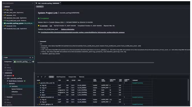 在最后一步中,將所有內(nèi)核與系統(tǒng)組件中的平臺(tái)放在一起,以生成最終的xclbin。遺憾的是,自動(dòng)閃爍和調(diào)試功能不適用于Kria板,因此流需要在成功生成比特流后停止。在創(chuàng)建組件之后,開發(fā)人員仍然可以調(diào)整其文件和配置,或者返回到其他組件,從而允許探索系統(tǒng),而不必總是從頭開始重新構(gòu)建所有內(nèi)容。