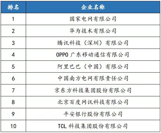 中國企業(yè)專利創(chuàng)新百強(qiáng)榜TOP10