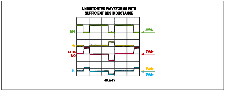圖10.50kbps總線波形,使用兩個390μH獨立電感作為“交流阻斷”電感對