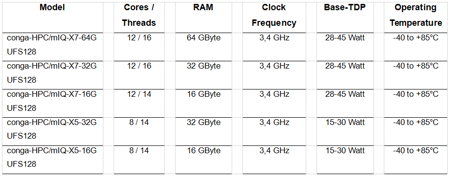 conga-HPC/mIQ-X 提供的版本選項(xiàng):