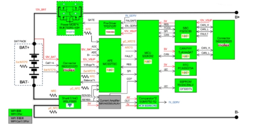 圖示3-大聯(lián)大世平基于NXP產(chǎn)品的汽車12V電池管理系統(tǒng)應用方案的方塊圖