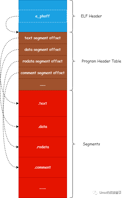 所以,程序加載器可以通過 ELF 頭中獲取到程序頭表的偏移量,然后通過程序頭表的偏移量讀取到程序頭表的數(shù)據(jù),再通過程序頭表來獲取到所有段的信息。