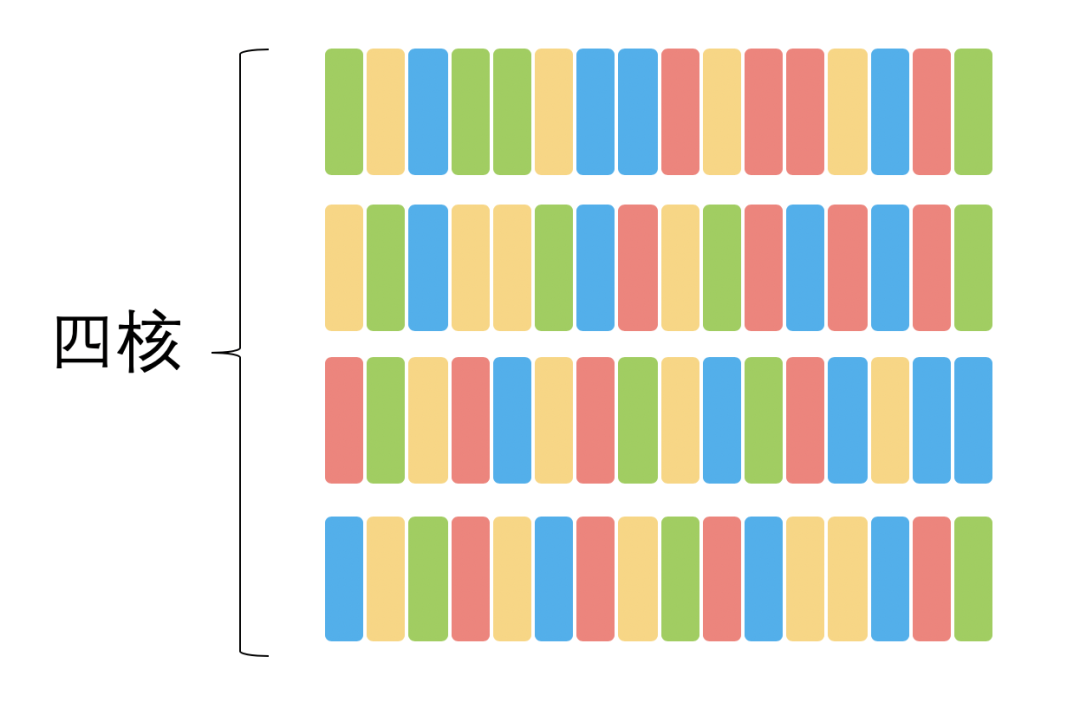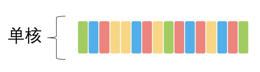下面兩幅圖以不同顏色的矩形代表不同的任務(wù)(可能是進程,也可能是線程)來描述它們可能在處理器上執(zhí)行的順序。
