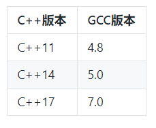 - C++標準與相應(yīng)的GCC版本要求如下: