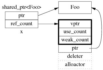此后 sp2 仍然能安全地管理 Foo 對象的生命期,并安全完整地釋放 Foo,因為其 ref_count 記住了 Foo 的實際類型。
