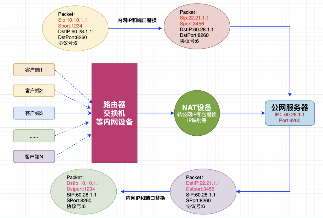 因?yàn)檫@時(shí)的客戶端是NAT設(shè)備,所以NAT環(huán)境下最多支持65535個(gè)并發(fā)訪問外網(wǎng)。