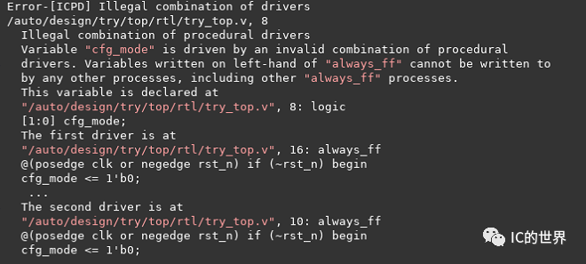如下案例中:cfg_mode 被多驅動,在實際項目設計中,多驅動的問題往往更加隱蔽,更不容易發(fā)現(xiàn)。