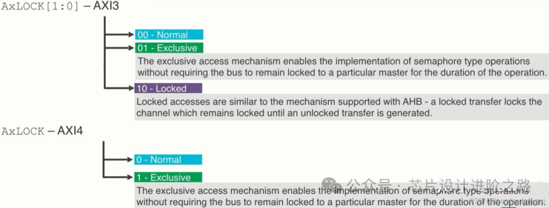 在AXI4中,為了提高性能和減少對(duì)總線性能的影響,只有Exclusive訪問被保留,而Locked訪問模式被舍棄。
