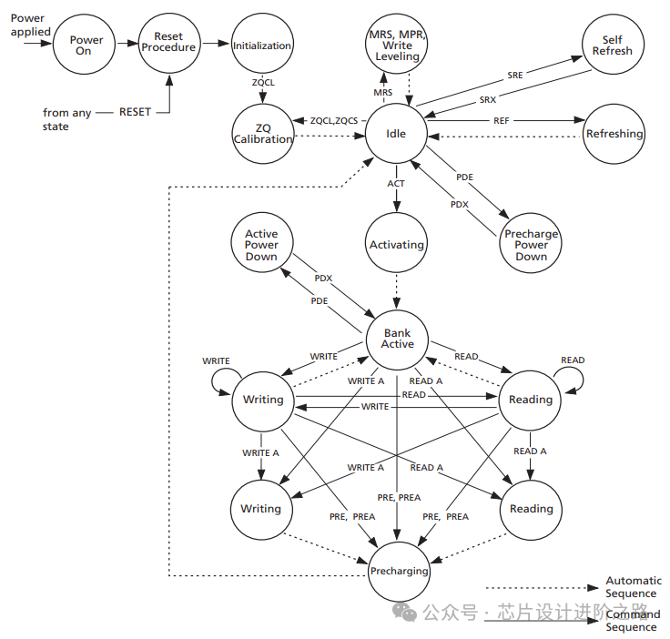 下面是DDR3運行過程的可能的狀態(tài)轉(zhuǎn)換: