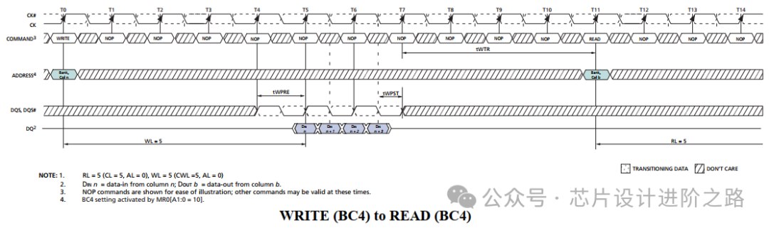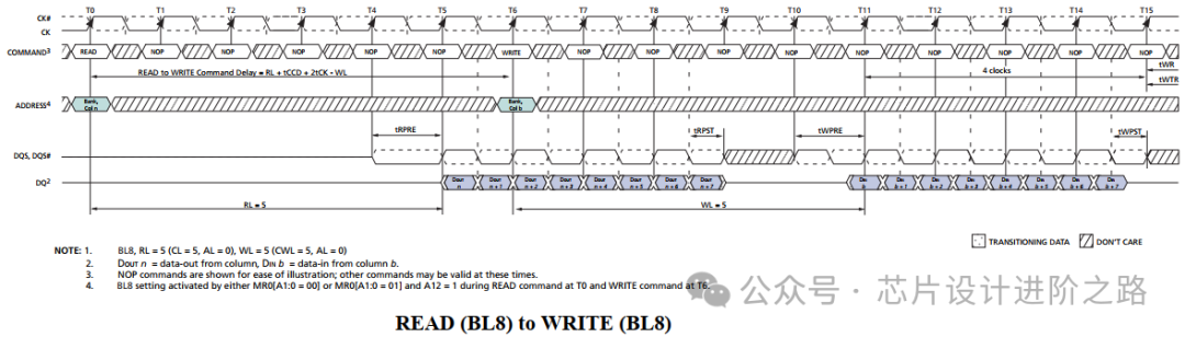 如果在寫操作期間接收到其他命令(如REFRESH, PRECHARGE),必須根據(jù)命令優(yōu)先級和時序要求進行處理。