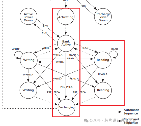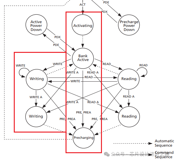 預(yù)充電命令確保所有數(shù)據(jù)傳輸完成,并準(zhǔn)備Bank進入下一次激活狀態(tài)。