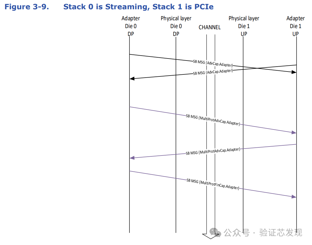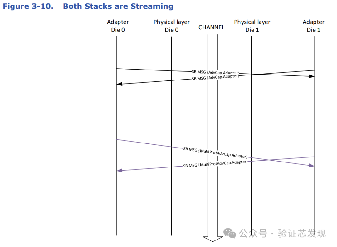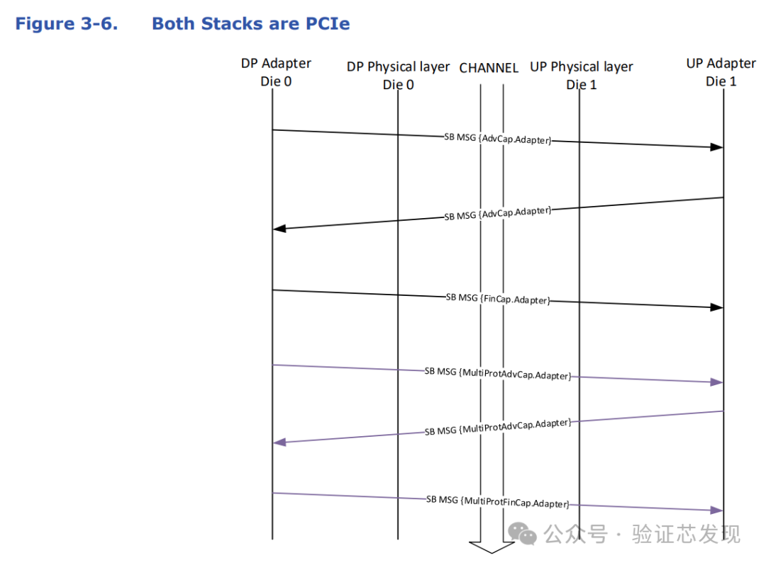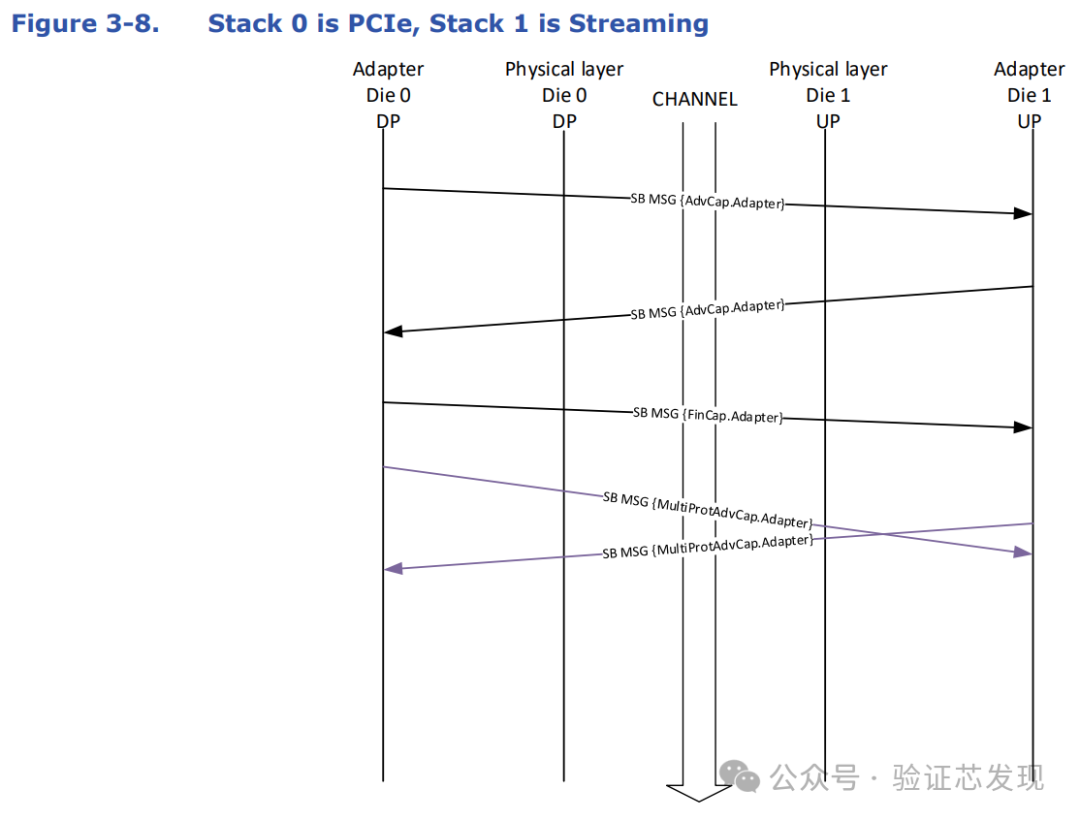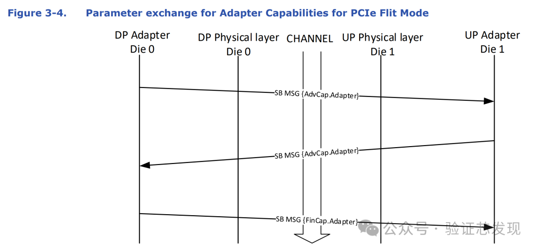 PCIe/CXL protocol Support:如果UP Adapter要支持PCIe或CXL協(xié)議,則需要先等待DP Adapter的第一個(gè){AdvCap.Adapter}消息,確定DP Adapter的Capabilities,然后向DP Adapter發(fā)送自己的{AdvCap.Adapter}邊帶消息。UP可以根據(jù)DP的Capabilities更改其Capabilities。
