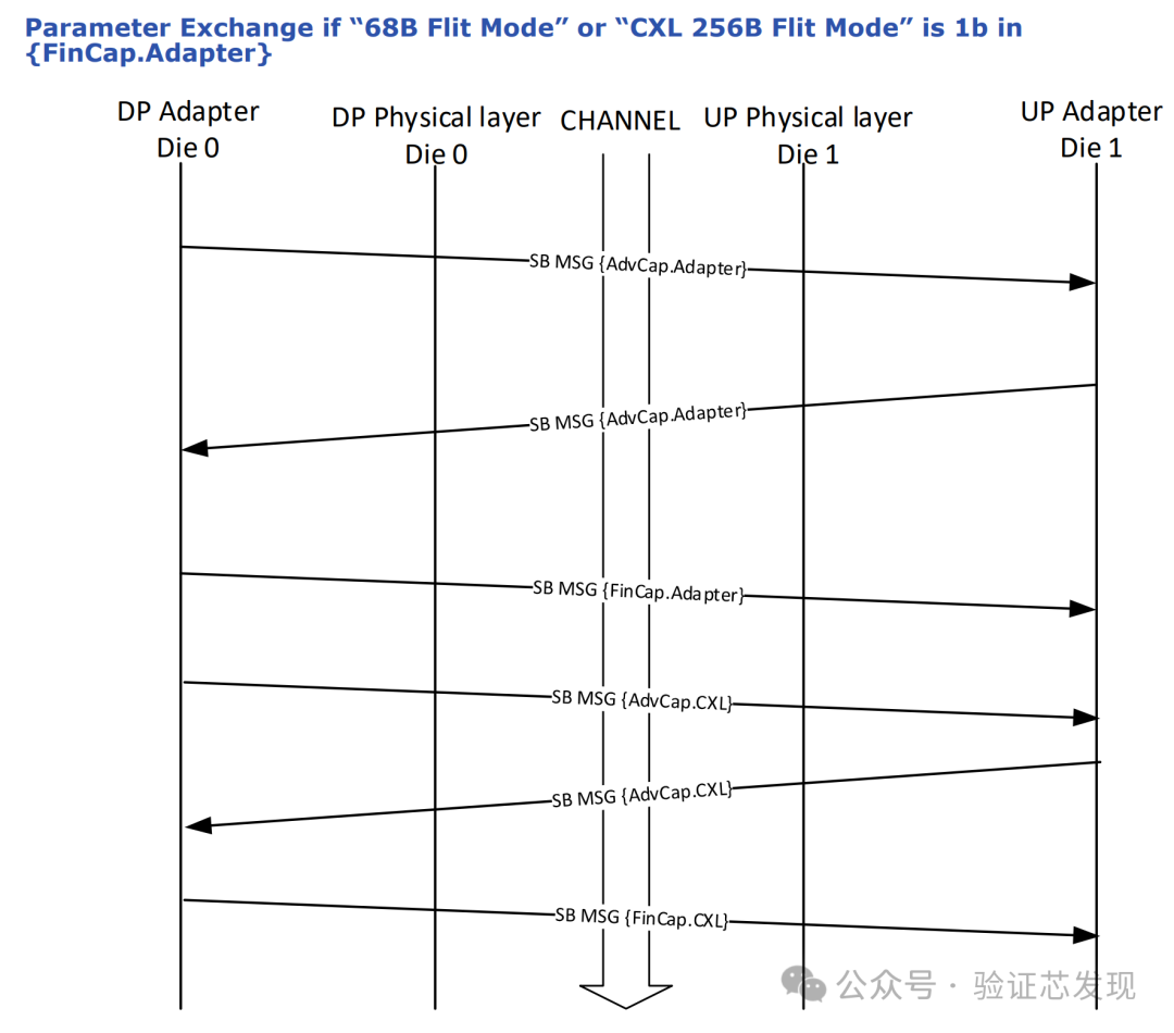 如果{FinCap.Adapter}消息中設(shè)置了“68B Flit Mode”或“CXL 256B Flit Mode”,則需要使用{AdvCap.CXL}和{FinCap.CXL}消息進(jìn)行新一輪參數(shù)協(xié)商,如圖所示。