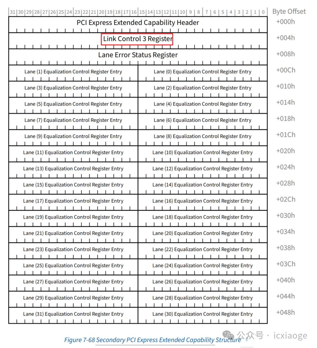 1.將Secondary PCI Express Extended Capability中的Link Control 3 Register中Perform Equalization字段寫1,此操作是為了保證重新建鏈過(guò)程中執(zhí)行Equalization操作,Perform Equalization字段默認(rèn)值為0,且每次重新建鏈后此字段會(huì)被清零。