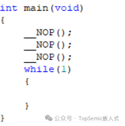 優(yōu)化等級0,while(1)前插入3個(gè)NOP |