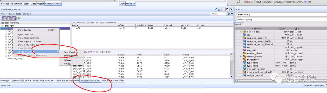 看register model里面的值也是類似的做法,找到 register view,然后找到 register model 添加 register 到 waveform里面。
