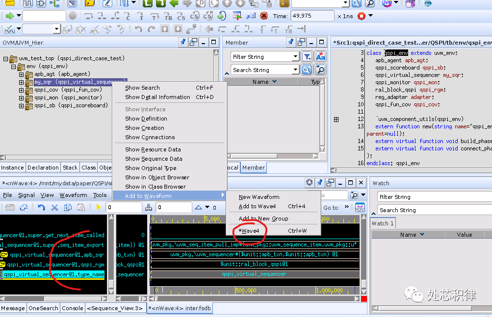 下面我們看下 uvm component里面的信息,通過指定一個 component 然后右擊 add to waveform 就可以看 component的信息。