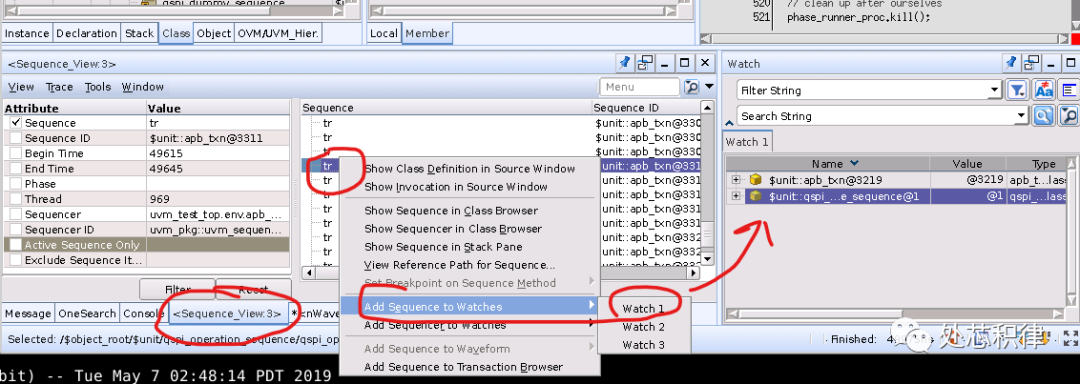 從這個watch中的object或者sequence里面選擇一個變量到 waveform上。重跑simulation,就可以看到對應(yīng)添加變量的值值。