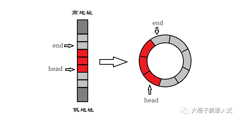 因此,在循環(huán)緩沖區(qū)中,不斷地從內(nèi)存分布情況 1 進行到內(nèi)存分布情況 2,又從 2 再回到 1,如此循環(huán)往復,當“讀索引”到達緩沖區(qū)的末尾時,也回繞到緩沖區(qū)開頭繼續(xù)進行讀取。