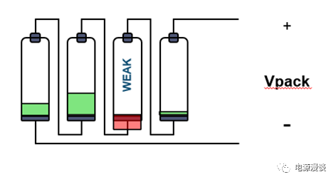 ? ? ? ? 對于一些低成本電池組,并不會對每一節(jié)電池電壓進行實時監(jiān)控,所以,當產(chǎn)生最弱電池電壓變負后,就會發(fā)生不可逆轉的失效或者事故。而具有單節(jié)電池保護電路的電池可以將最弱電池變?yōu)殚_路,以此阻止繼續(xù)放電,從而避免安全事故,但這并非是一個高效的處理方式,接下來我們解釋一下這一點。