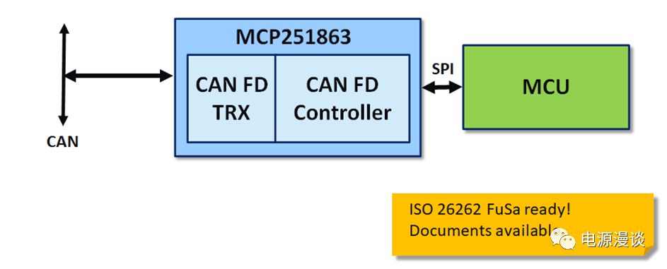 圖2中給出了采用SPI通信連接主MCU和MCP251863的示意圖,MCU可以通過SPI去控制和配置CAN芯片。