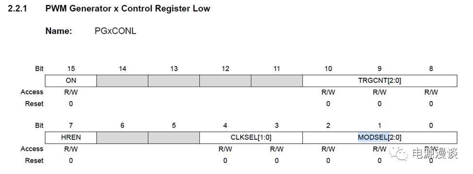 具體來說,通過PGxPHASE來實(shí)現(xiàn)對(duì)上升沿部分脈沖寬度的控制,通過PGxDC來實(shí)現(xiàn)對(duì)下降沿部分脈沖寬度的控制。
