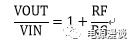 根據(jù)理想運放的特性,兩個輸入端的輸入阻抗均為高阻抗,所以運放輸入引腳上的電流為0,同時又由于運放兩端的電壓是相同的,所以負輸入端電壓為VIN.此時,我們可以根據(jù)電阻分壓關(guān)系求出VIN和VOUT之間的關(guān)系。